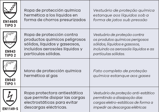 Para poder declarar una protección contra algún producto químico de la lista, deben realizarse las pruebas de impregnación y, en adelante, las de degradación. El resultado de la prueba de degradación se indica en el folleto informativo.