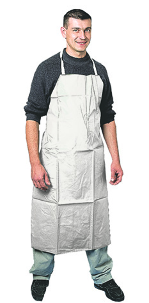 Double white PVC coated apron on polyester backing. Thickness 0,30mm. EN13034 Type PB[6]